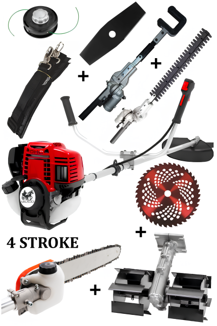 4 Zamanlı Profesyonel Yan Tırpan + Çit Kesme + Dal Budama + Ağaç Silkeleme + Paletli Çapa Aparatı